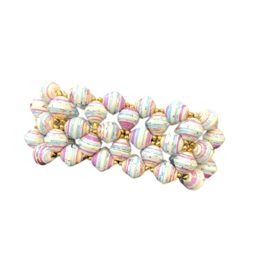 Paper beads on elastic. "Double Star" Style. Fits approximately a 7" adult woman's wrist. The multicolor one only runs small, for a large child or tween.