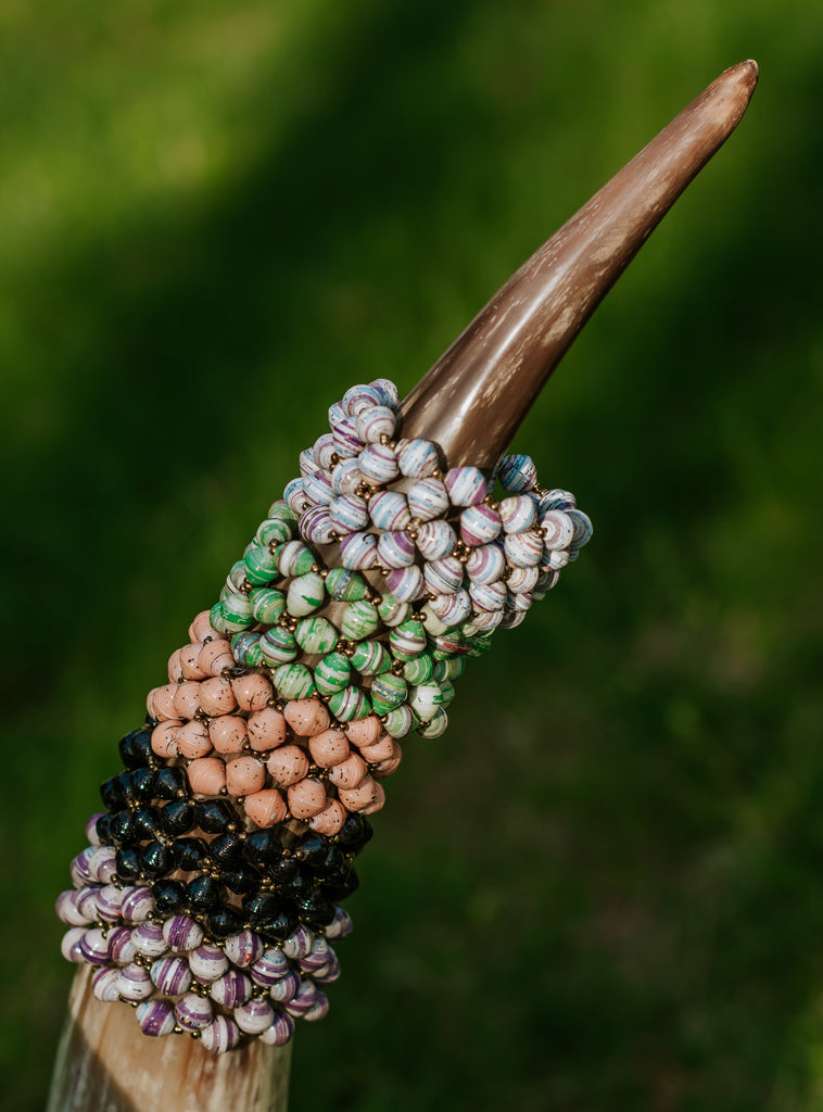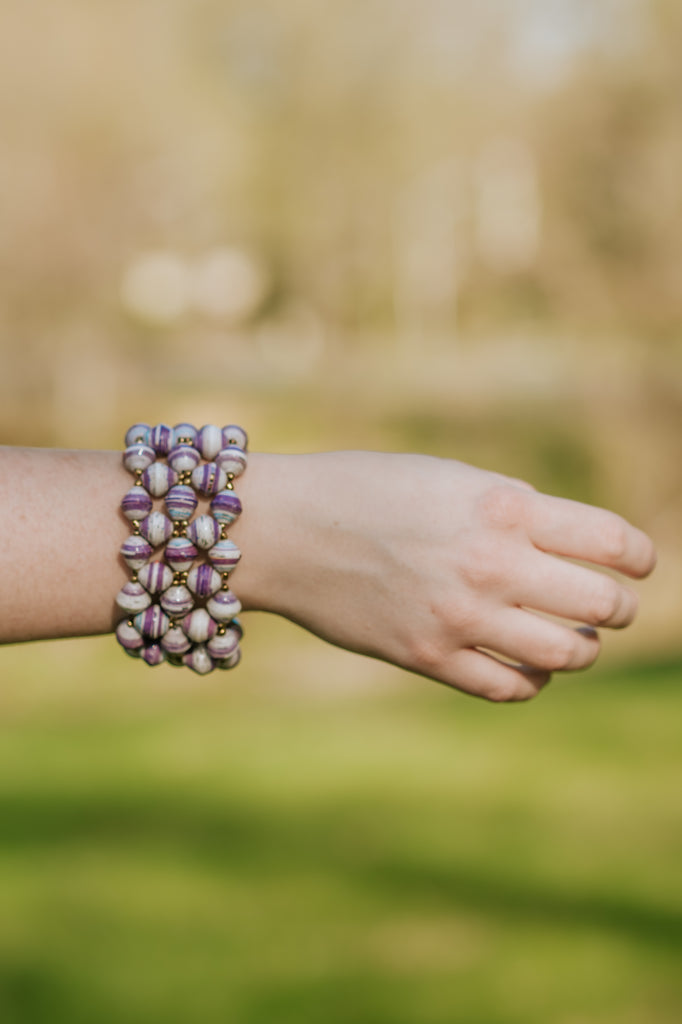 Handmade Ugandan Paper Bead Elastic Bracelet (Multiple Color Options)